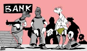 Ale Ziemię obiecaną oglądamy w niekonwencjonalnej, zrewitalizowanej przestrzeni zabytkowej budowli z lat 1922–1924, zajmowanej dotychczas przez kilka kolejnych instytucji bankowych, przypominającej czystą architekturą w stylu neoklasycystycznym „świątynię pieniądza” o trzynawowej strukturze. Od 2021 roku nowym właścicielem stał się zagłębiowski przedsiębiorca Marcin Majchrowicz. Mieści się tam instytucja kultury o intrygującej nazwie Bank Sztuki. Na prowizorycznej widowni może zasiąść około 100 osób. Ponad kameralną sceną umieszczono ekran, na którym wyświetlane są sceny grane na żywo przez aktorów za kulisami. Widzowie oglądają na nim też sceny zarejestrowane wcześniej w plenerze lub wykreowane przez AI. Widzą multimodalny spektakl teatralny, wykorzystujący najnowsze technologie cyfrowego świata, opowiadający w dawnym gmachu banku o ludziach w okresie schyłku kapitalizmu czy może już żyjących w postkapitalizmie.